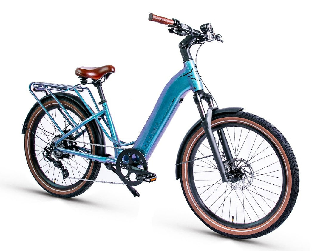 - Power and range: Bafang geared rear hub drive 500W paired with a matching color 48V 13Ah 720Wh Li NCM battery for an estimated 30 to 50 miles per charge. Typical charge time is about 7.5 hours.